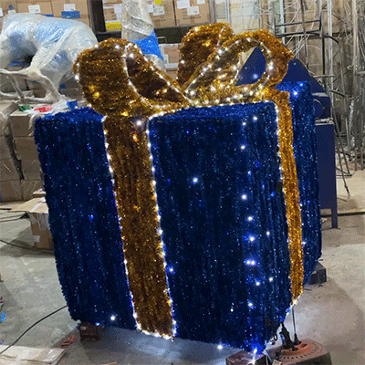 Главная » Световые декоративные композиции » Композиция "Новогодний подарок" 180 см х 150 см х 150 см Сине-золотой